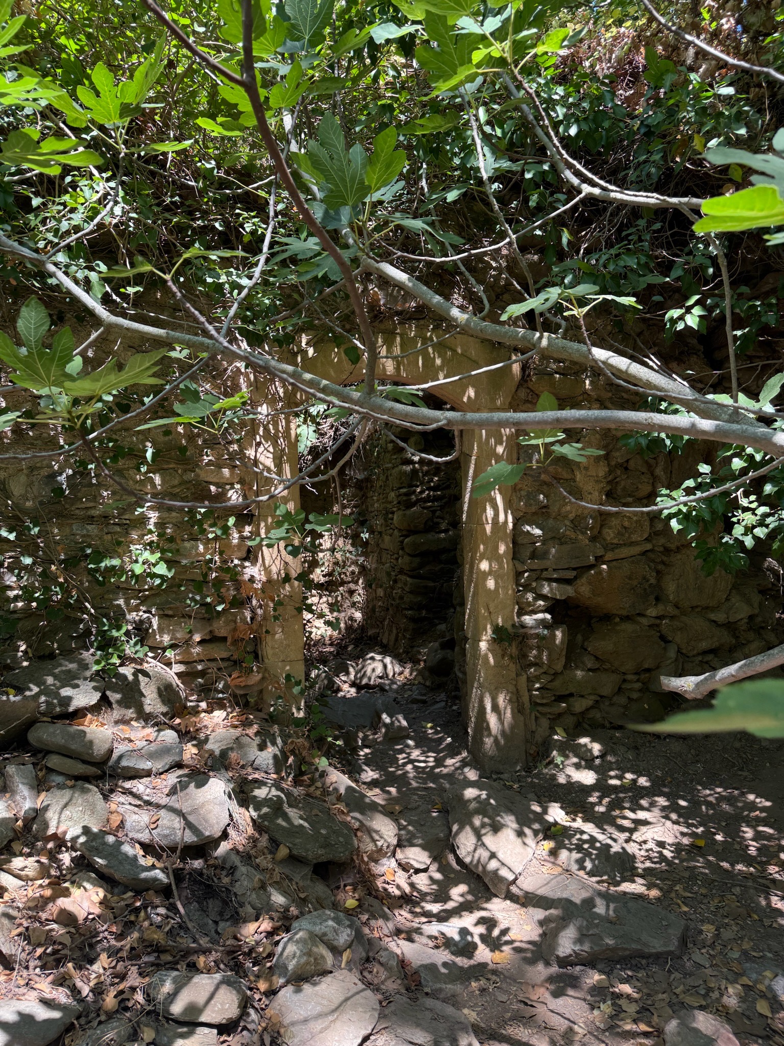 One has the option here to extend the route at the furthest point — we did not do so on this occasion — to go up to the Pefki village. There you can find a couple of tavernas and a source of water.